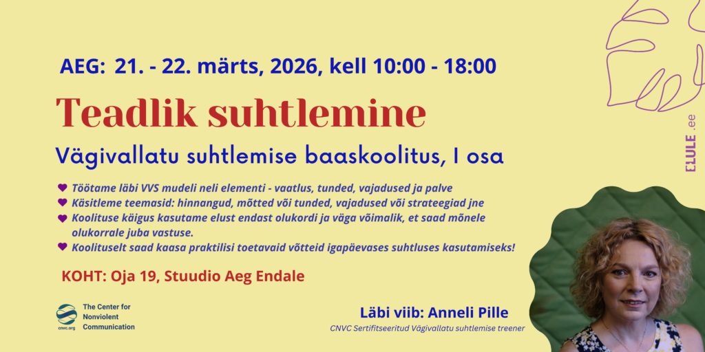 Vägivallatu suhtlemise baaskoolituse käigus saate tuttavaks meetodi alustega, mudeliga ja saate praktiseerida nende kasutamist erinevates suhtlemis olukordades.
